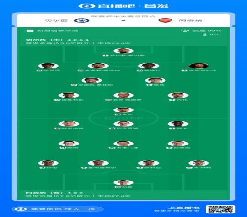 切尔西vs阿森纳首发:约克雷斯、萨卡先发,吉乌、埃斯特旺出战
