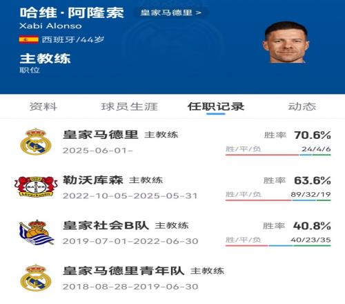 胜率70.6%!阿隆索执教皇马半年战绩:34场比赛,24胜4平6负